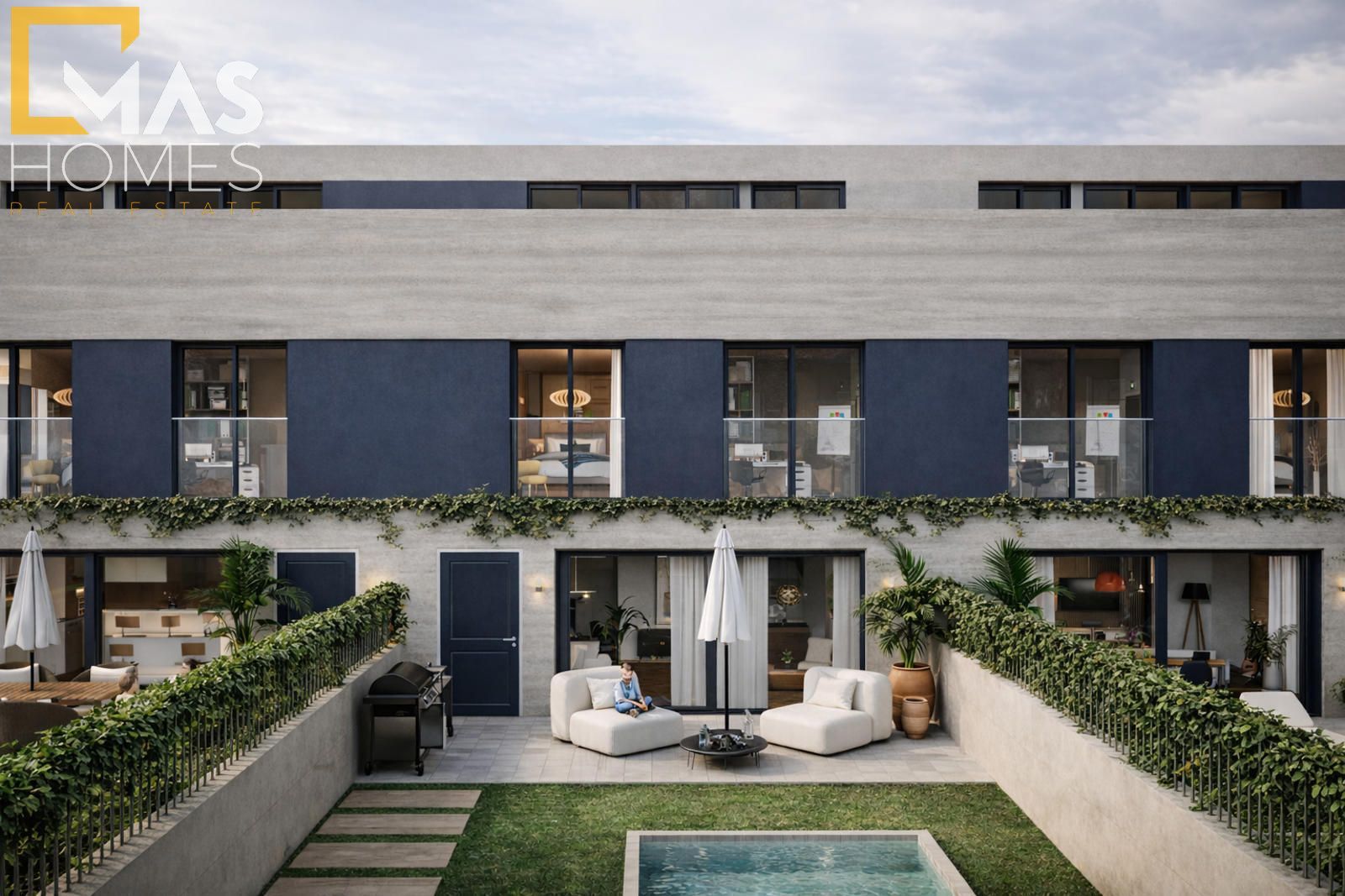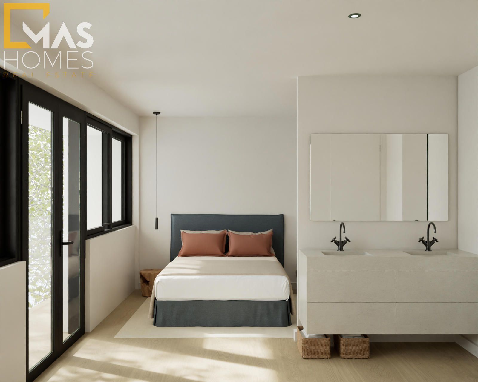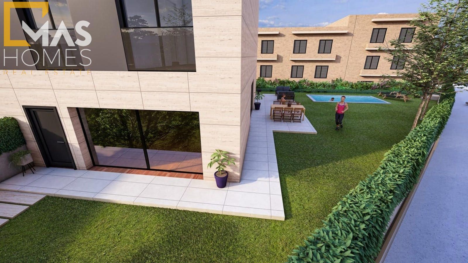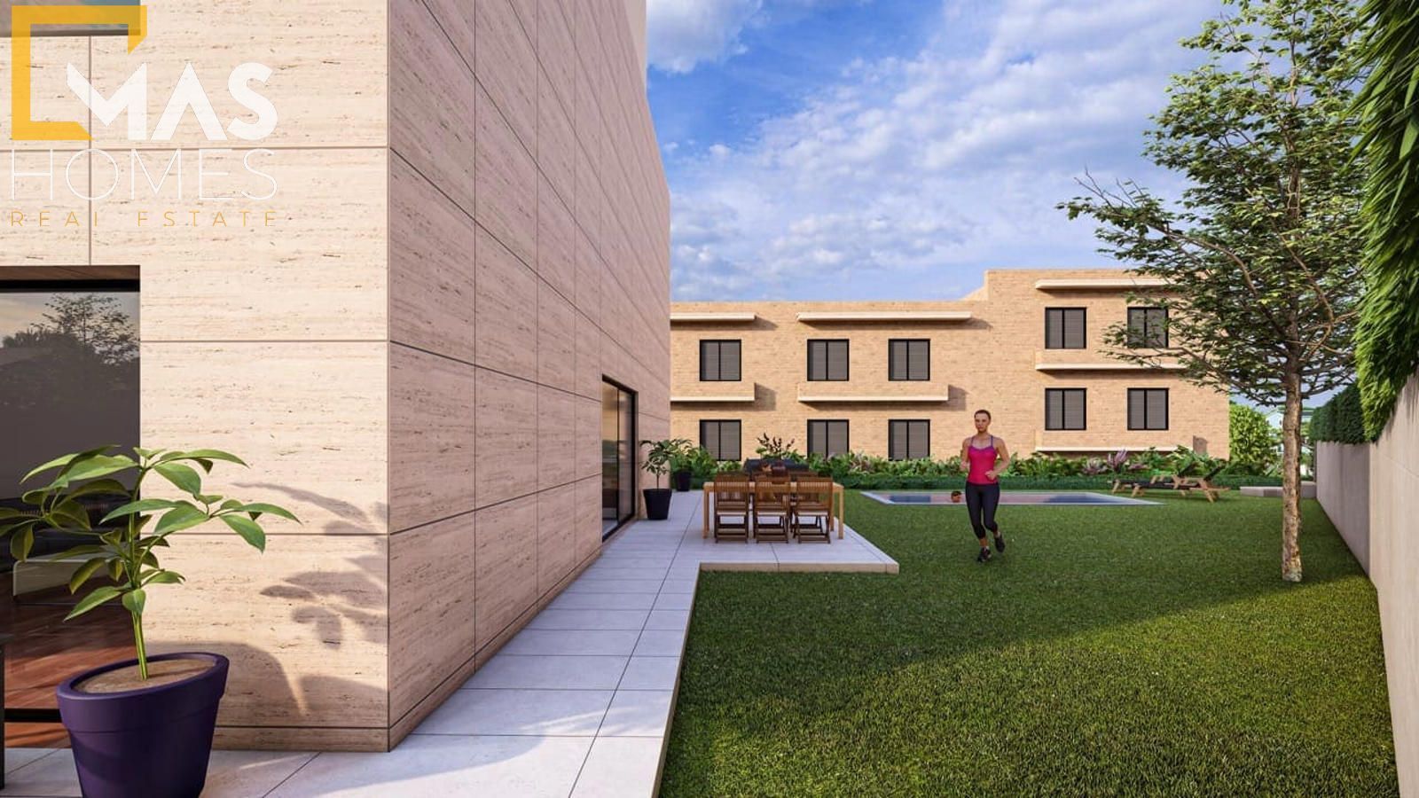 Con superficies construidas desde 268 m², cada vivienda ha sido concebida para ofrecer amplitud, elegancia y funcionalidad. La planta principal recibe con un amplio hall que conduce a un luminoso salón-comedor, abierto al jardín privativo con piscina opcional, generando una transición armónica entre interior y exterior. La cocina tipo office, completamente equipada, combina diseño y practicidad con una cuidada selección de materiales. En esta misma planta se dispone además de un dormitorio individual y un baño completo.