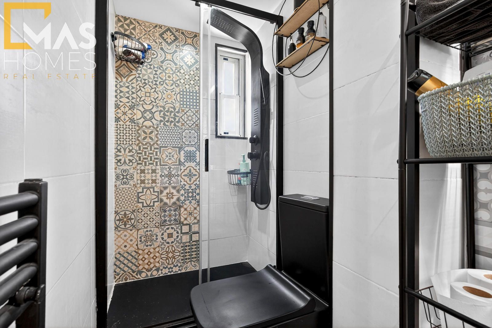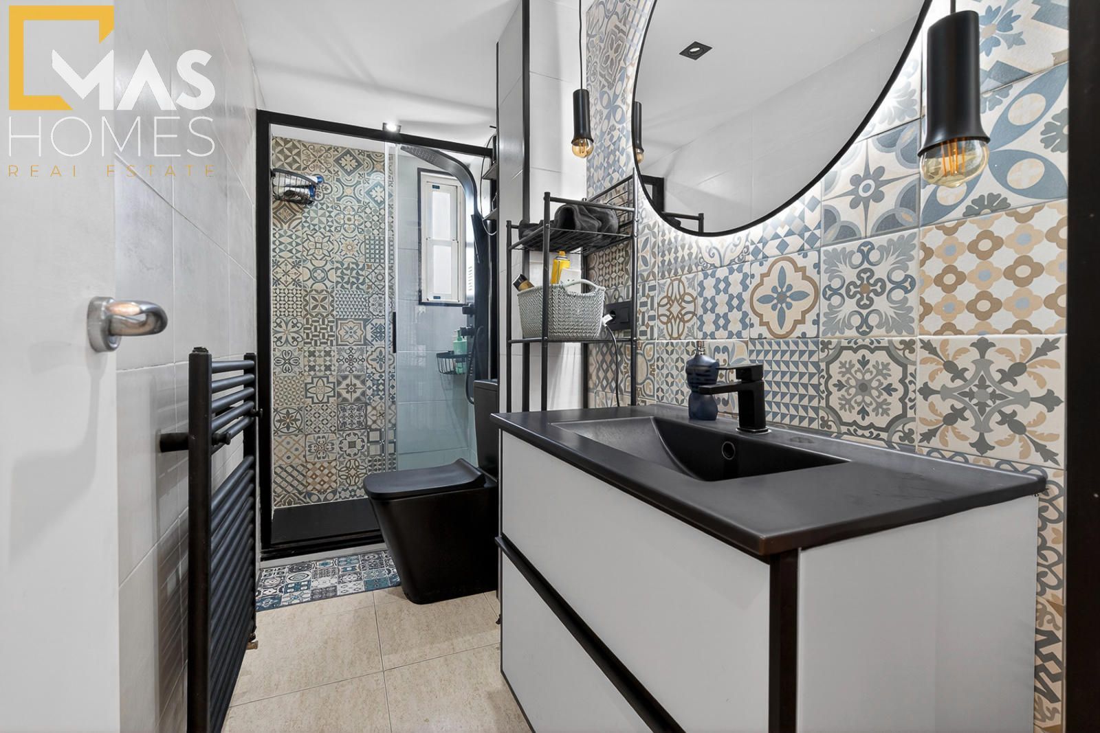 La zona de descanso ofrece tres habitaciones bien distribuidas, pensadas para adaptarse a diferentes necesidades: dormitorio principal, espacio infantil, despacho o zona multifuncional. El baño, completamente renovado, incorpora un moderno plato de ducha y acabados actuales.